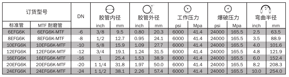 增強層:4-6 層高強度鋼絲交替纏繞 (-6 至 -16 為 4 層,-20 及以上規格為 6 層 )。