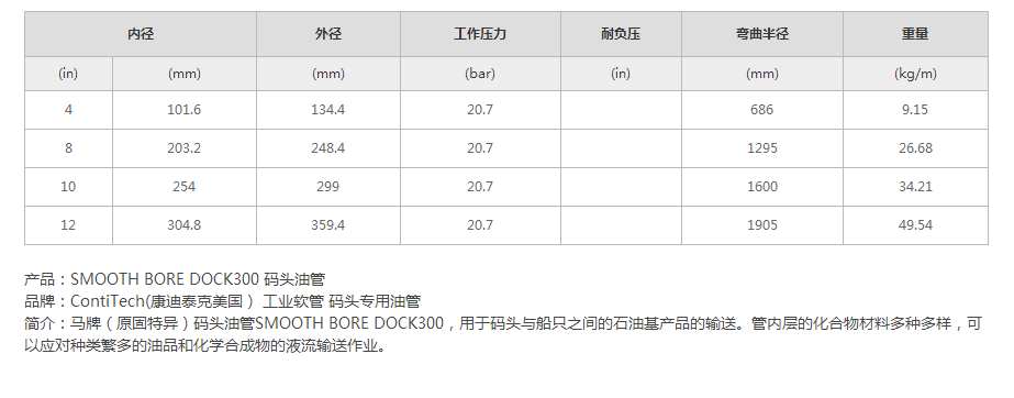 用途:本產品可以在各種類型的作業條件下,用于碼頭與船只之間的石油基產品的輸送。管內層的化合物材料多種多樣,可以應對種類繁多的油品和化學合成物的液流輸送作業