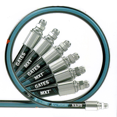 用途:MXT性能超越了行業標準。柔韌性更好,彎曲半徑更小,重量更輕,便于在狹小復雜的空間布管。采用蓋茨專業材料科學技術,提供高強度鋼絲編織技術,結構更緊湊,占用面積更小。滿足SAE 100R16和SAE 100R17*的尺寸和性能。滿足SAE 100R2和SAE 100R19*的性能。 對SAE 100R17覆蓋尺寸-4到-12,對SAE 100R19覆蓋尺寸-4到-8