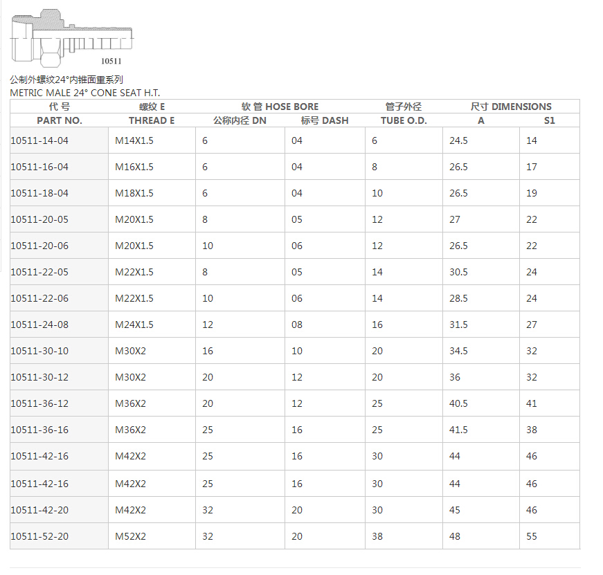10511公制外螺紋24°內錐重系列