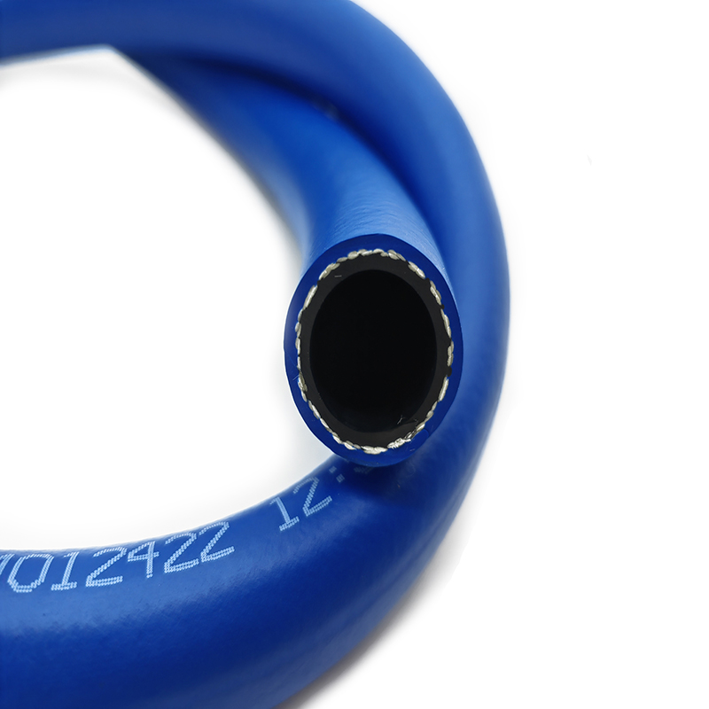增強層:一層高強度合成纖維編織層,特殊的編織角度使得軟管具備高耐曲繞性,并對接頭有較強的抱緊度,不必再使用卡箍緊固。